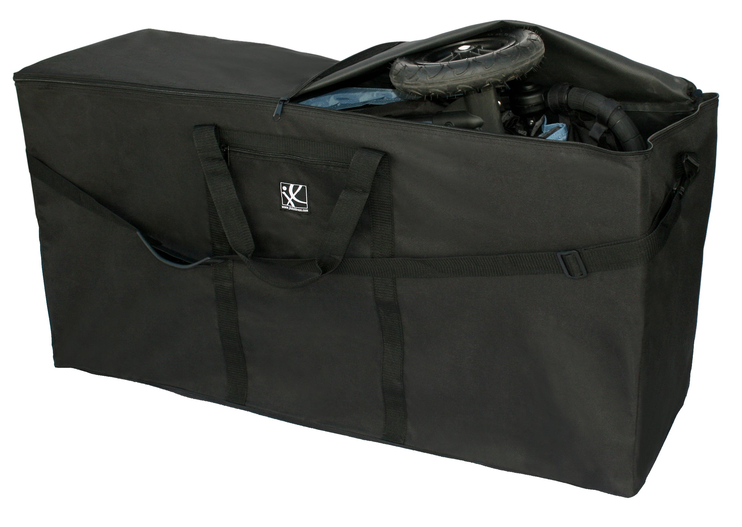 Your stroller is one of your biggest investments as a parent. Keep it clean, protected and easy to carry when traveling with the J.L. Childress Single & Double Stroller Travel Bag. This travel bag is made of heavy-duty, easy care fabric with carry handles and an adjustable and detachable shoulder strap with shoulder pad. The Single & Double Stroller Travel Bag features a three-sided, dual zipper top opening that makes placement of the stroller in and out of the bag a breeze. It also has a small, zippered exterior pocket to hold the shoulder strap (we recommend removing the strap before checking as luggage) and a clear ID pocket with ID card for easy identification. This bag is also super useful as a storage bag for beach chairs, high chair, sports equipment, toys, camping gear and more – making it useful well beyond your upcoming adventure. Protect and easily carry standard and dual strollers with the Standard & Dual Stroller Travel Bag by J.L. Childress. The bag features zippered top opening, pocket, carry handles with padded hand protector and an adjustable & detachable shoulder strap with shoulder pad for comfort. Heavy-duty, easy care fabric for maximum protection.