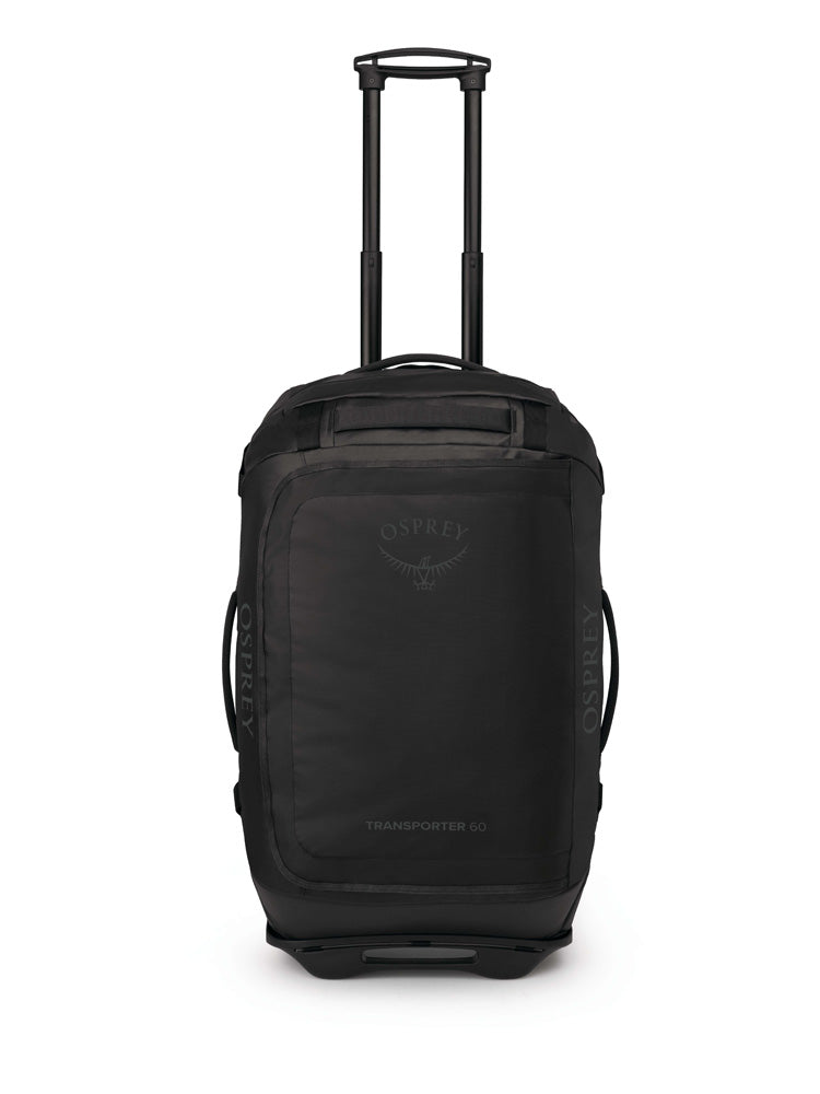 Reach for the Transporter® Wheeled Duffel 60 when your cargo is too heavy for a standard duffel. This workhorse gear hauler is built on our rugged HighRoad chassis with oversized wheels to conquer cobblestones and cracked concrete with ease. This mid-sized bag is perfect for weeklong adventures or gear-intensive weekends. The zippered mesh compartment on the lid keeps essentials close at hand while the dual-sided TPU coating and oversized top flap keep the elements at bay. This bag is sustainably made from bluesign® approved recycled materials with a PFC-free DWR treatment that sheds moisture. Volume: 60L Weight: 6.41 lb (2.91 kg) Size: 28"h x 16"w x 17"d (70h x 41w x 43d cm)